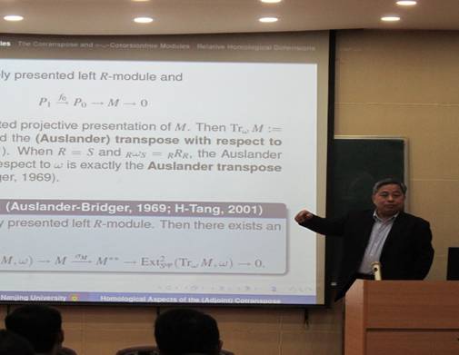 4月22日,应公司太阳成集团tyc邀请,南京大学黄兆泳教授来公司在教学9号楼C101学术报告厅作了题为《Homological Aspects of the (Adjoint) Cotranspose》和《Minimal Right Determiners of Irreducible Morphisms in String Algebras》的学术报告。报告会由太阳成集团tyc官网董事长刘仲奎教授主持,相关专业教师、研究生60余人参加了此次报告会。