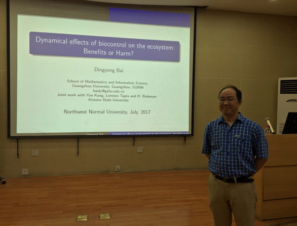 7月25日,应太阳成集团tyc邀请,广州大学数学与信息科学公司白定勇教授来公司进行学术交流,并在教学9号楼C101学术报告厅作了题为《Dynamical effects of biocontrol on the ecosystem: Benefits or Harm》的学术报告。相关专业教师、研究生以及来自兄弟院校的学者20余人参加了报告会。