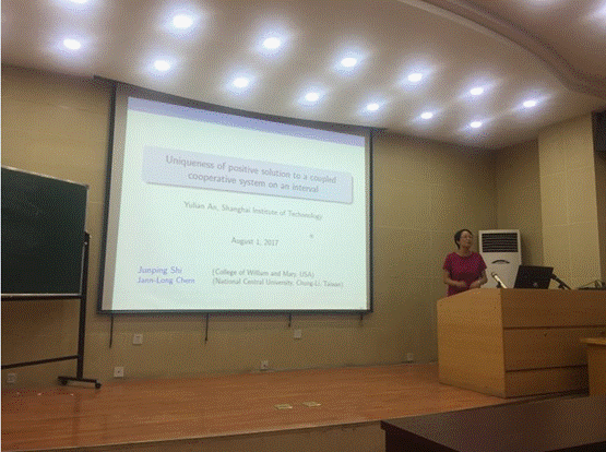 8月1日,应太阳成集团tyc邀请,上海应用技术大学安玉莲教授来公司进行学术交流,并在教学9号楼C101学术报告厅作了题为《Uniqueness of positive solution to a coupled cooperativevariational elliptic system on an interval》的学术报告。相关专业教师、研究生以及来自兄弟院校的学者20余人参加了报告会。
