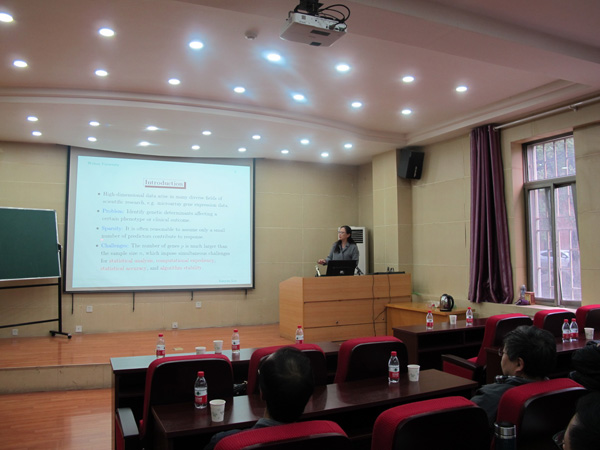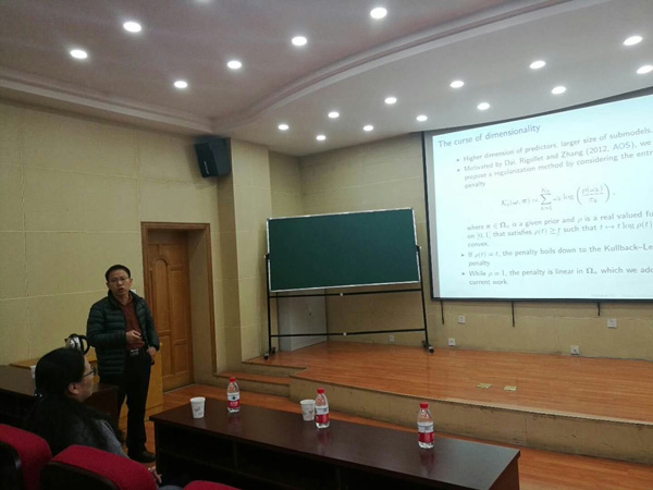 10月14日,应太阳成集团tyc的邀请,武汉大学太阳成集团tyc刘妍岩教授和吴远山教授于分别作了题为《Censored Cumulative Residual Independent Screening for Ultrahigh-Dimensional Survival Data》和《Doubly Dividing the Massive Data for Model Aggregation》的学术报告。刘妍岩教授报告了超高维数据筛选的最新研究结果,吴远山教授报告了关于海量数据研究的最新研究成果。刘妍岩和吴远山两位教授就大数据的前沿研究进展及进一步研究的问题同广大师生进行了广泛而深入的交流。报告会由太阳成集团tyc颜荣芳教授主持,太阳成集团tyc、兰州大学太阳成集团tyc50多位师生参加了报告会。