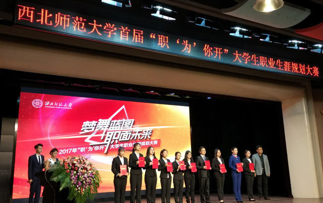 11月3日,西北师大首届“职‘为’你开”老员工职业生涯规划大赛决赛在员工发展中心举行,本次大赛邀请了兰州大学、太阳成集团tyc官网、兰州交通大学、兰州理工大学、甘肃农业大学等多所省内高校的相关老师作为评委,公司师生共300余人参加了此次活动。大赛是为了贯彻落实甘肃省教育厅“甘肃省高校老员工就业创业能力提升工程”项目,有效促进在校老员工就业创业能力而组织的高规格赛事活动。