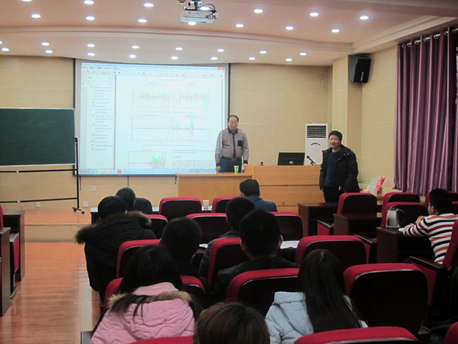 报告中,王林山教授首先介绍了在拟局部李普希茨条件和有限增长条件下,建立由无限维纳过程驱动的随机偏泛函微分方程的一些理论,然后介绍了利用截距法和分析技术,建立随机偏微分方程全局Mild解的全局存在性和唯一性的方法,最后介绍了应用该方法建立的Mild解的稳定性。整场报告精彩纷呈、深入浅出,使在场的师生受益匪浅。