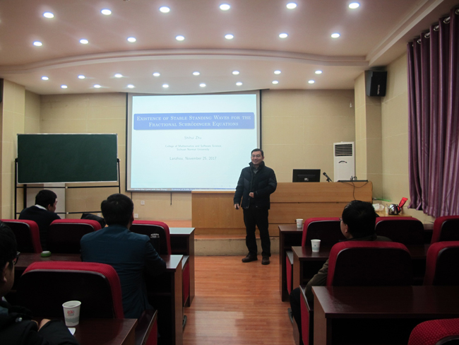应公司邀请,四川师范大学朱世辉副教授于2017年11月23日到26日访问公司,并在25日上午作了题为《Existence of Stable Standing Waves for the Fractional Schrodinger Equations with Combined Nonlinearities》的学术报告。相关专业教师、研究生共50余人参加了报告会。