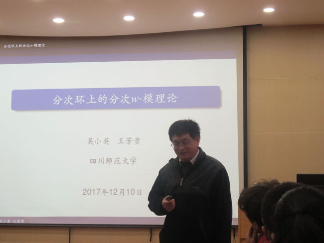 12月10日,应公司邀请,四川师范大学博士生导师王芳贵教授来公司,并在9号楼C101学术报告厅作了题为《分次环上的分次W-模理论》的学术报告。报告会由杨晓燕教授主持,相关专业师生60余人参加了报告会。