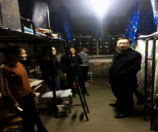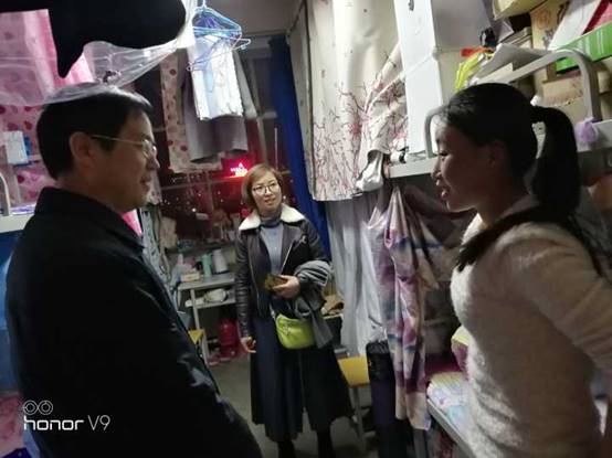 公司党委书记常正霞、副书记王玮、副经理张召琪走访了兰天公寓员工宿舍,经理李永祥、团委书记杨霞宏走访了校内4号公寓,副经理刘建成、专职辅导员王强走访了党校7号公寓,副经理张贵仓和马成龙老师看望了新校区研究生。班主任各自走访看望了本班员工。