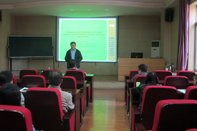3月29日,应公司邀请,上海大学博士生导师王卿文教授来公司进行学术交流。王卿文教授在教学9号楼C101学术报告厅作了题为《Simultaneous decompositions of some matrices over an arbitrary division rings with applications》的学术报告。报告会由太阳成集团tyc官网董事长刘仲奎教授主持,相关专业师生40多人参加了报告会。