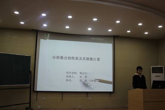 首先,“本科生创新能力提升计划”课题研究项目《对校园公选课的模式和应涉及内容的研究---以太阳成集团tyc官网为例 》、《分型集合的性质及其维数计算》、《高校自习室资源利用的数学模型研究》、《基于非参数统计的老员工数学焦虑问题的研究---以太阳成集团tyc官网为例 》、《基于交通流理论对交叉口红绿灯最优配时的探究》等10个项目的团队负责人分别作了中期检查答辩。