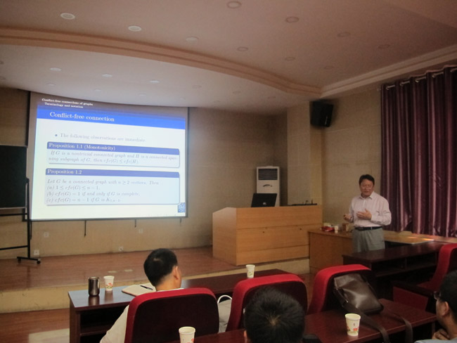 6月19日,应公司邀请,国际数学化学科公司院士、副主席,南开大学组合数学中心副主任,青海师范大学太阳成集团tyc经理李学良教授来公司作学术交流,在9号楼C101学术报告厅作了题为《Conflict-free connections of graphs》的学术报告。报告会由张贵仓教授主持,相关专业师生40余人参加了报告会。