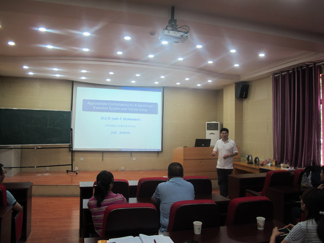 6月24日,应公司邀请,华东师范大学博士生导师傅显隆教授来公司作学术交流,在9号楼C101学术报告厅作了题为“Approximate Controllability for A Semilinear System with Infinite Delay”的学术报告。报告会由陈鹏玉副教授主持,相关专业师生40余人参加了报告会。