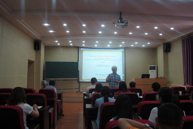 6月26日,应公司邀请,韩国国立中北大学(Chungbuk National University) 博士生导师Un Cig Ji教授应邀来公司作学术交流,并在9号楼C101学术报告厅作了题为“Inequalities for Positive Module Operators on von Neumann Algebras”的学术报告。报告会由王才士教授主持,相关专业师生30余人参加了报告会。