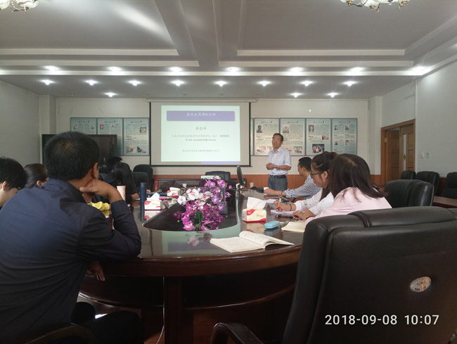 应公司邀请,武汉纺织大学博士生导师李登峰教授来公司进行学术交流。9月8日上午,李登峰教授在教学9号楼B308报告厅作了题为《漫谈应用调和分析》的报告,报告会由陶双平教授主持,相关专业师生20余人参加了报告会。