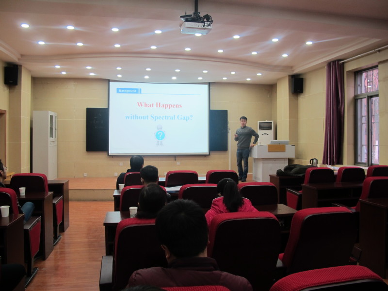 报告中,张文萌教授首先介绍了不变流行和不变叶层的相关概念、研究背景及研究进展。随后,详细介绍了研究不变流行和不变叶层的主要方法,并指出谱间隙条件是在现有方法下研究不变流行和不变叶层的一个无法跨越的条件。最后系统介绍了如何在没有谱间隙条件的情形下通过克服困难获得一类离散微分同胚映射的不变流行和不变叶层的重要工作。