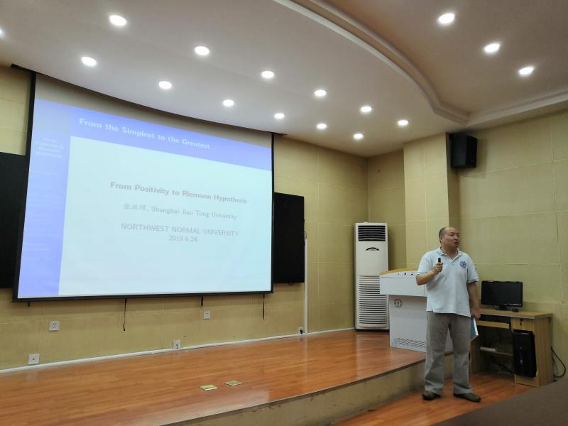 6月24日,应公司邀请,上海交通大学数学公司张跃辉教授来公司进行学术交流,并在9号楼C101学术报告厅作了题为《从正性到黎曼假设》的学术报告。报告会由乔虎生教授主持,相关专业师生40余人参加了报告会。