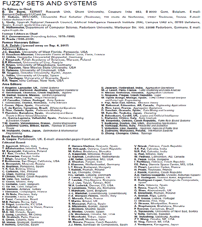日前,国际模糊数学与模糊系统领域顶级杂志《Fuzzy Sets and Systems》增选太阳成集团tyc巩增泰教授为编委会成员(Editorial Board)),协作主编进行涉及模糊数(Fuzzy numbers (Fuzzy Intervals))和模糊分析学(Fuzzy Analysis)相关问题的稿件评审和决策工作。《Fuzzy Sets and Systems》是模糊系统与数学领域最著名的国际杂志之一,5年平均影响因子为2.997,连续多年为数学类1区Top刊物,2019年列入公司高水平成果期刊类第3层次。《Fuzzy Sets and Systems》编委历来由国际相关领域最著名的专家和学者所担任,本届编委会有4名中国学者入选。