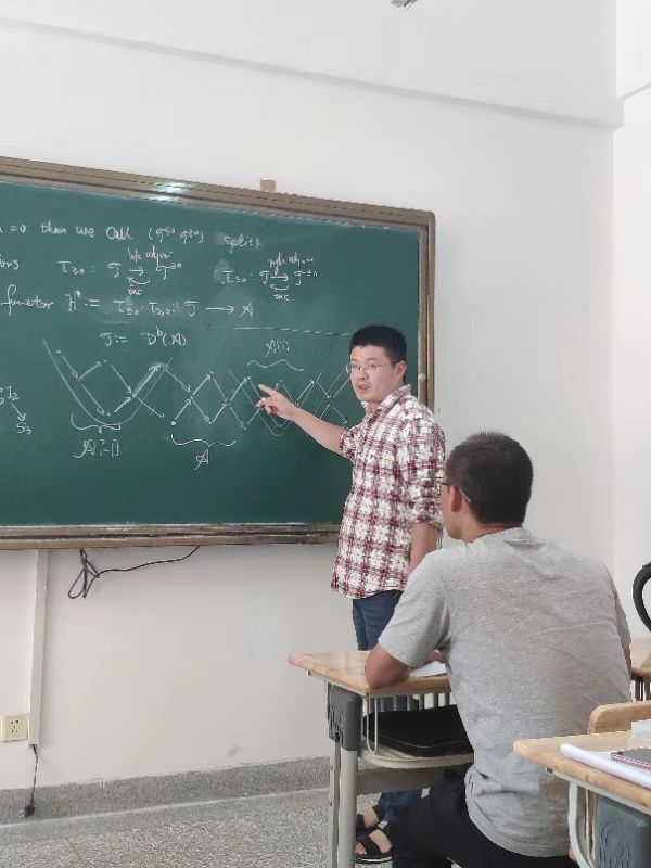 期间,韩喆副教授首先从实现函子的定义讲起,通过具体引用quiver的例子得出了一个实现函子就是一个三角函子的结论.最后韩喆副教授关于t-结构理论稍做了阐述,给出了t-结构的定义,并得出了一个t-结构是bounded的一些等价的刻画。