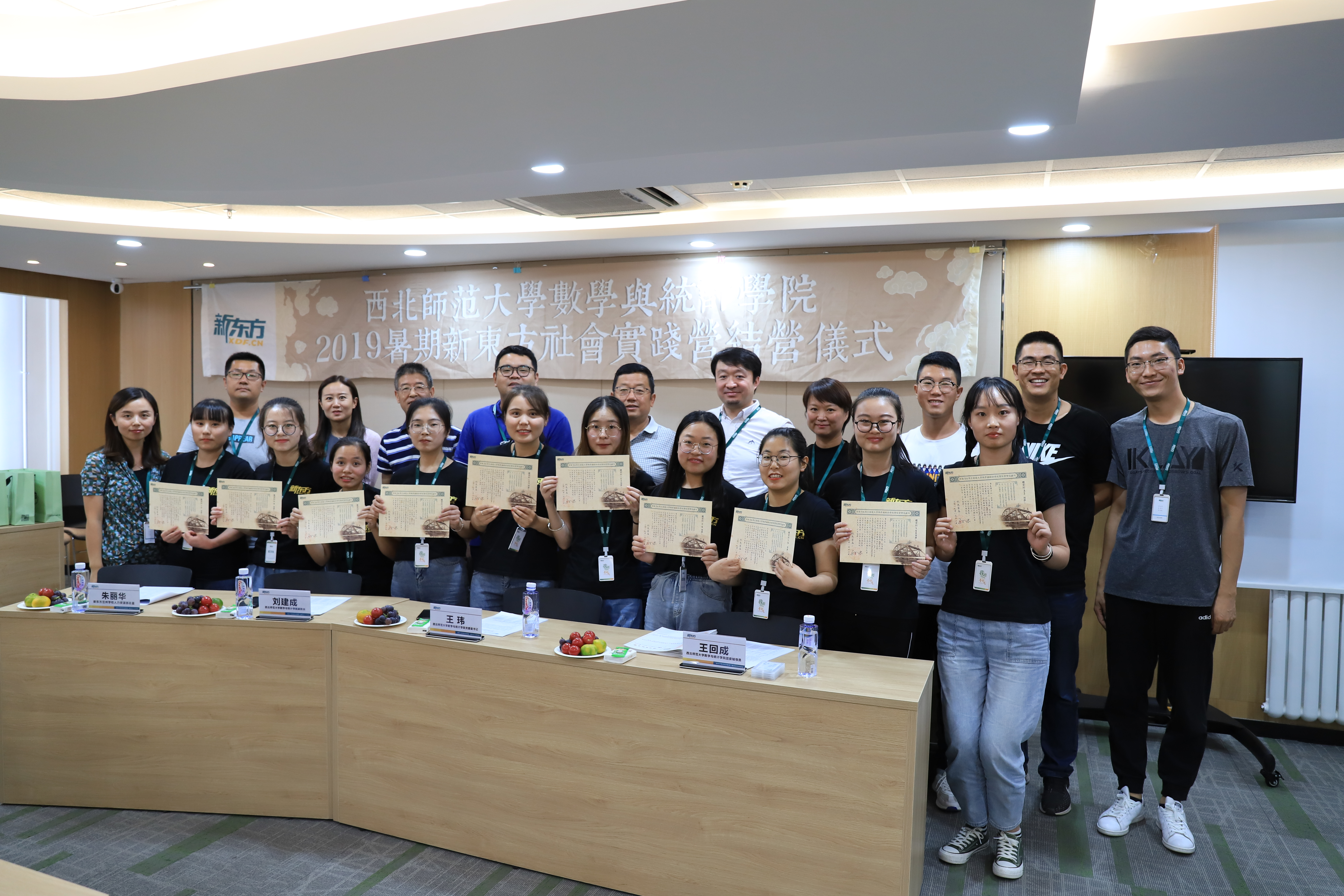 8月12日下午,新东方兰州公司—太阳成集团tyc2019年暑期师范生专业技能训练实践项目结营仪式在兰州新东方大厦商公司会议室成功举办。数学与统计公司党委副书记王玮、副经理刘建成、辅导员王回成,新东方兰州公司董事长孙吉芯、人力资源部总监朱丽华、优能中学部总监张池、优能中学部副总监刘志国、优能一对一部总监王妍妍、资产管理部总监姬宗昌及第二批太阳成集团tyc选拔参训的10名本科生参加了结营仪式。