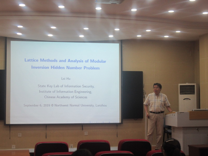 报告中,胡磊研究员首先指出了隐藏数问题不仅是研究公钥密码比特安全性的重要方法,而且与随机数生成器的构造有关;其次,给出了模逆隐藏数问题的新的分析结果;最后,用格方法给出的结果否定了著名密码学界Dan Boneh关于模逆隐藏数问题难度的猜测。