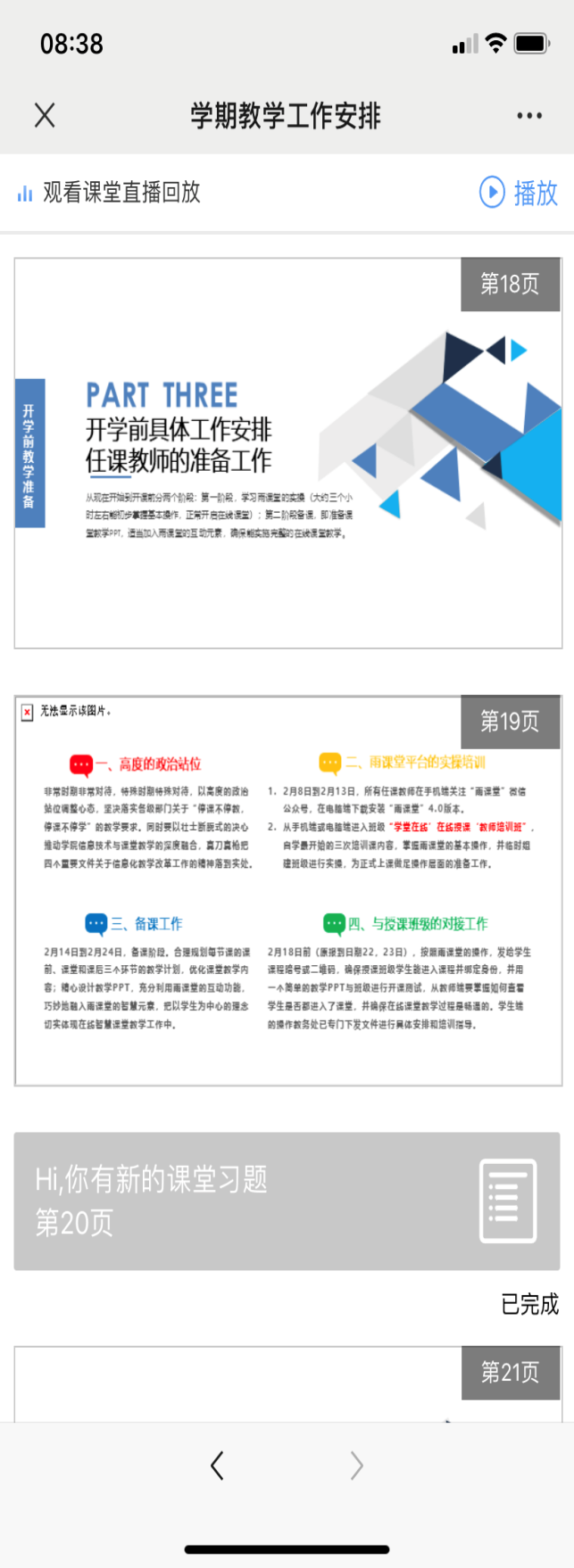一、云端课堂,保质保量完成教学任务。2月9日,刘建成副经理通过雨课堂主持召开太阳成集团tyc2019-2020学年度第二学期教学工作安排会议,根据国家教育部、甘肃省教育厅和公司在疫情防控期间的教学工作要求,对公司的线上教学工作进行了详细部署安排,要求全体教职工要在特殊时期提高认识、转变思维、扎实备课,保质保量完成教学任务,同时为老师们示范“雨课堂”等教学软件的使用方法。全院教师严格按照课程安排进行线上教学,熟练运用多种教学软件,为员工在线答疑解惑。