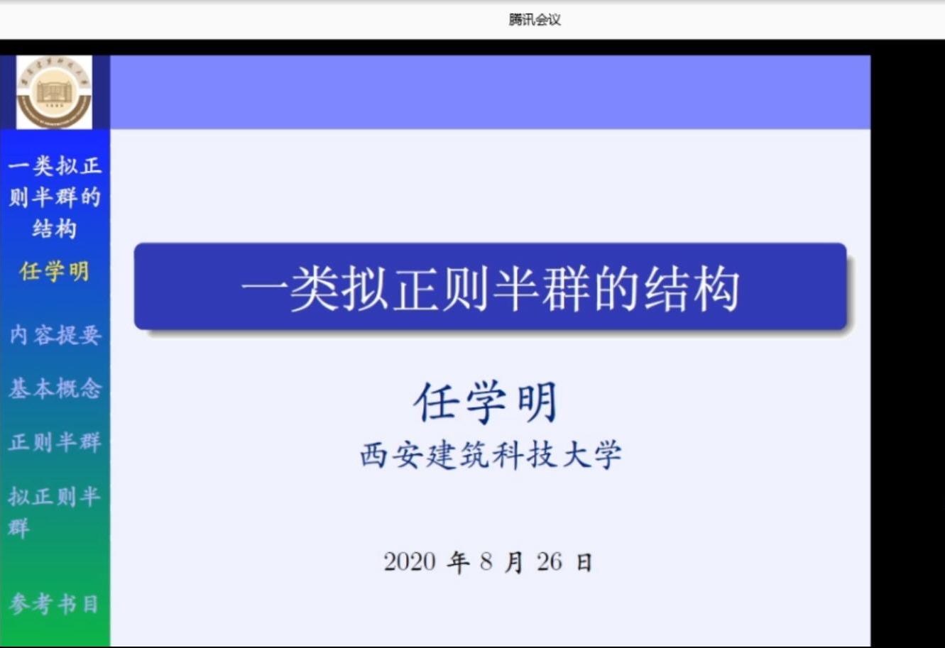 8月26日下午,应太阳成集团tyc邀请,西安建筑科技大学任学明教授在线为公司师生作了题为《一类拟正则半群的结构》的学术报告。报告会由乔虎生教授主持,相关专业师生30余人参加了报告会。