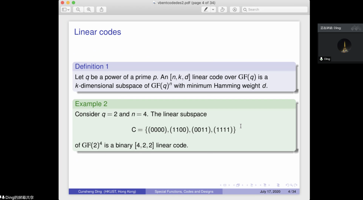 丁存生教授首先详细介绍了线性码和t-设计的相关概念,并列举相关例子;其次介绍了如何用线性码来构造t-设计;最后介绍了如何用特殊函数来构造码。