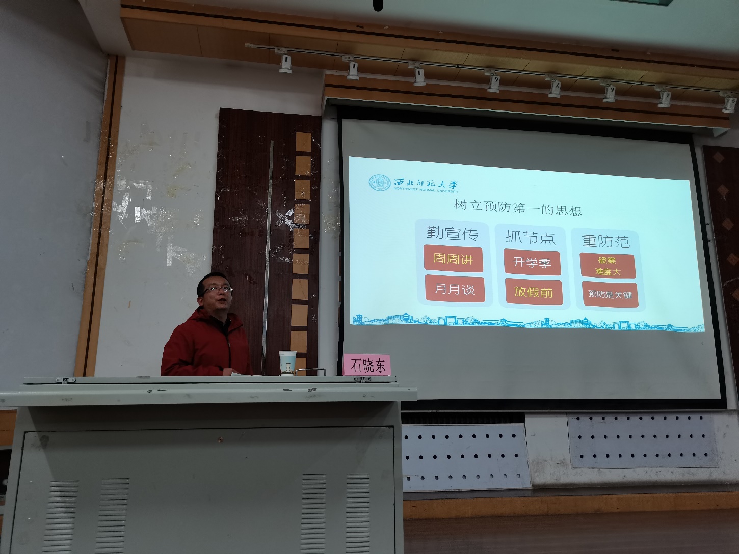 为了提升公司员工安全意识,增强突发事件处理和防范能力,远离电信网络诈骗,10月20日晚,公司武保处石晓东副处长应公司邀请在6C-115作了《员工安全及防范电信网络诈骗》专题讲座,公司预科生、本科生、研究生及辅导员共计300余人参加。