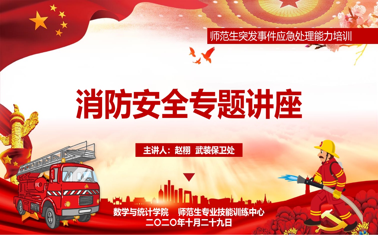 赵老师从我国现代消防部队的历史沿革、校园火灾的特点和类型、校园火灾的预防及应对等方面作了详细介绍,并以新闻报道、事故分析、现场说法等方式,深入讲解了近年发生的多起重大火灾事故实例,用图文并茂、触目惊心的画面和数字使全体参训人员受到了极大震撼,深刻认识到了“隐患险于明火、防范胜于救灾”的重要性。