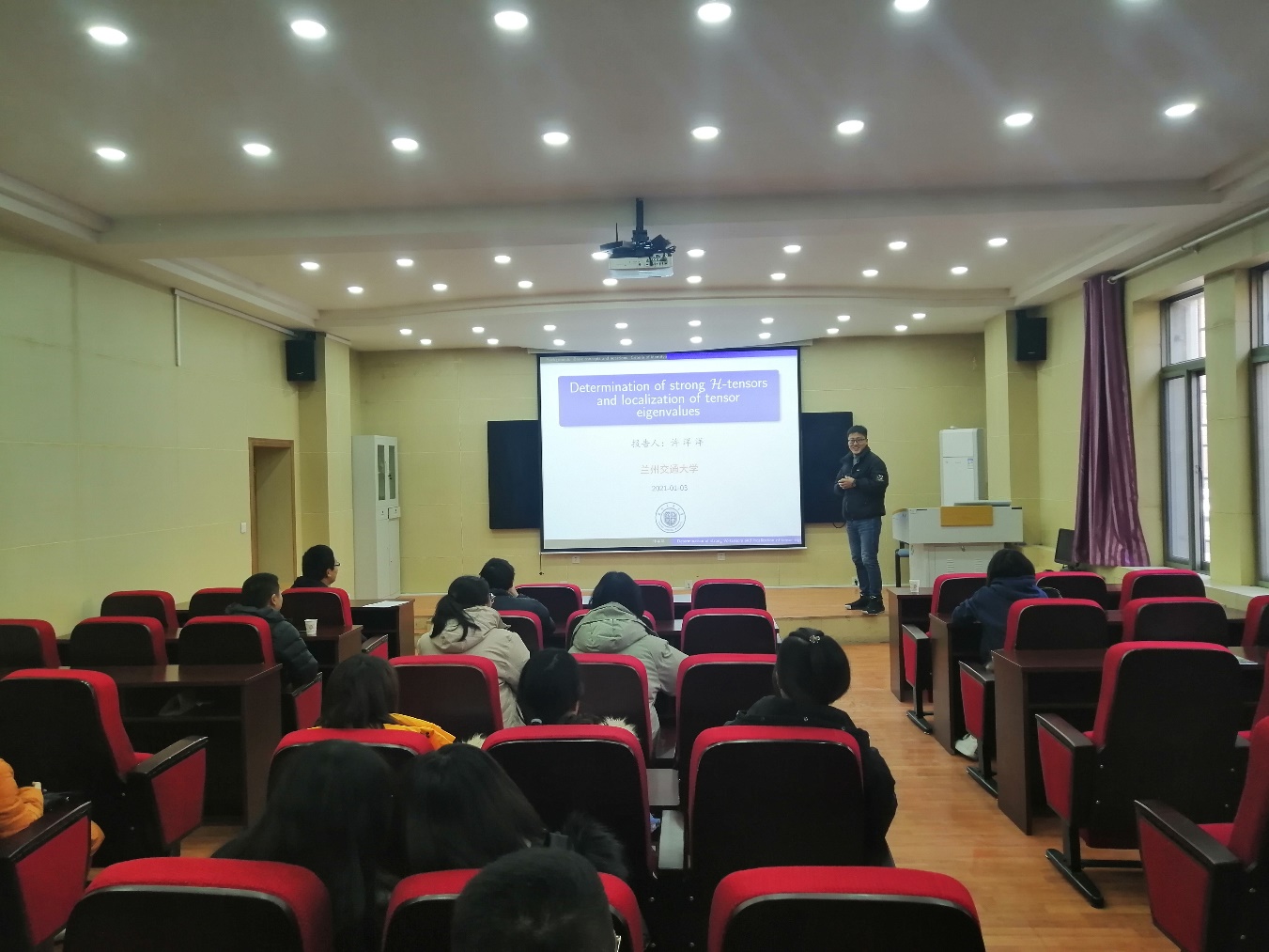 1月3日,应公司邀请,兰州交通大学许洋洋副教授来公司进行学术交流,并在教学9号楼C101学术报告厅作了题为《Determination of strong H-tensors and localization of tensor eigenvalues》的学术报告。报告会由孟令胜副教授主持,相关专业师生30余人参加了此次报告会。