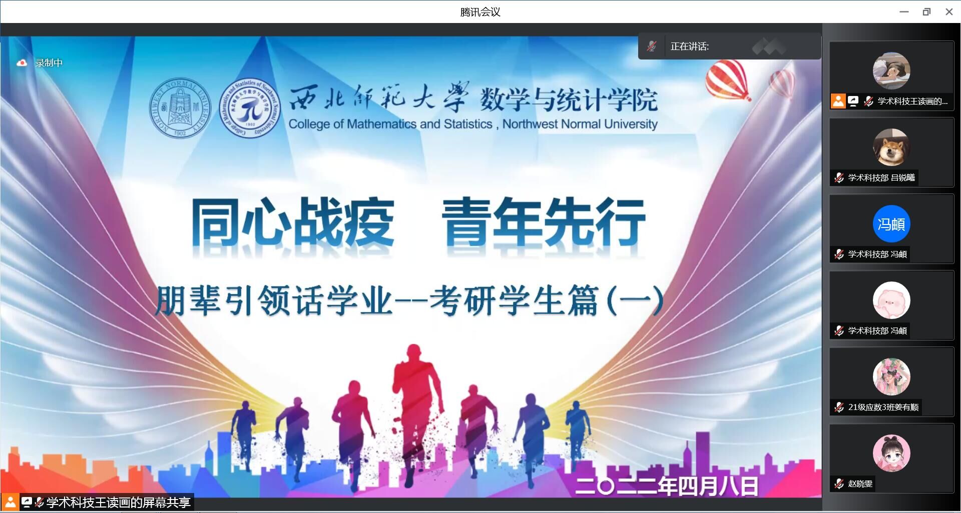 本期分享会为考研员工篇,于4月8日晚19:30在腾讯会议进行,公司分别邀请了2018级信息与计算科学1班王小龙、2018级信息与计算科学1班杨琪琪和2018级数学与应用数学2班潘宇航三位同学分享考研备考经验。