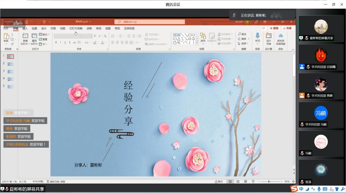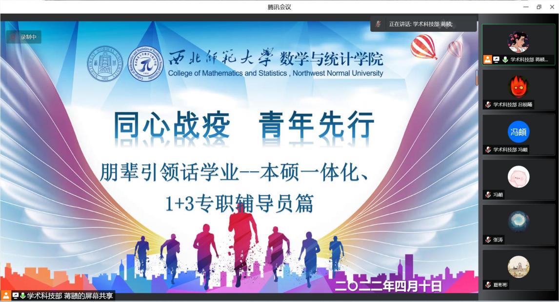 本期分享会为本硕一体化、1+3推免辅导员篇,于4月10日晚19:30在腾讯会议中进行,公司邀请了2018级信息与计算科学1班孙润洁,数学与应用数学1班夏彬彬、李文环,数学与应用数学2班何雨婷,数学与应用数学3班左济宁和数学与应用数学4班王睿六位同学作为代表为学弟学妹分享保研的心得与经验。