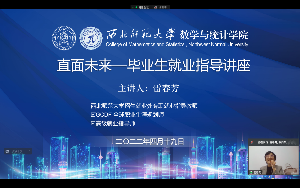 为更好地促进公司2022届毕业生高质量充分就业,进一步帮助员工树立正确的就业观和择业观,解决考研、就业中的困惑,了解目前的考研、就业形势、就业政策,转变就业观念,提高就业技能,4月19日晚,公司邀请人才招聘处专职就业指导教师雷春芳老师在腾讯会议做了题为《“三个重视”助力成功就业》的专题讲座,讲座由公司党委副书记张向东主持。