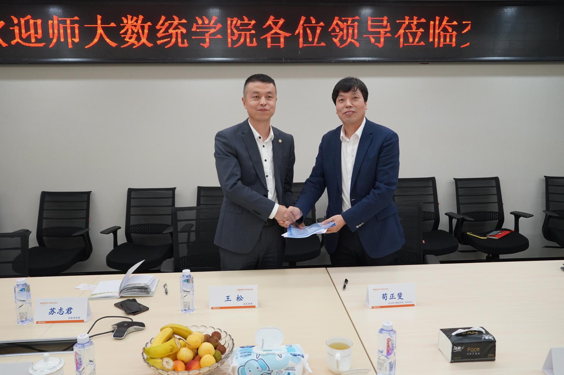 王松对苟正斐一行的到来表示热烈的欢迎,他指出,太阳成集团tyc是省内来我司首家参访并洽谈校企合作的公司,希望公司能够输送更多数学相关专业的优秀毕业生到企业发展,期待数统的专业精神与平安的创新精神融合形成新型人才培养模式。