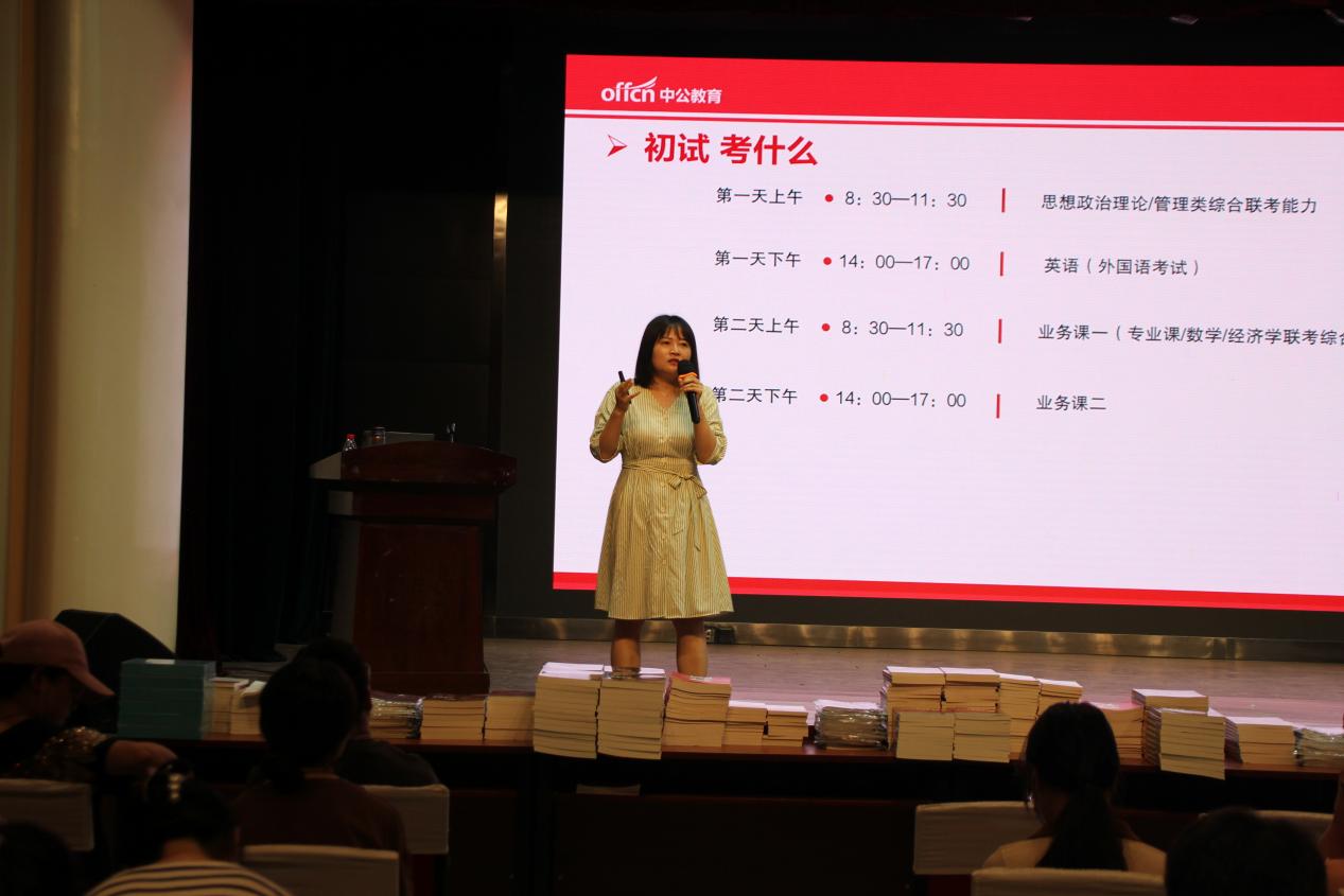 最后中公考研陈聪老师向同学们详细介绍了备考的相关事宜,并代表中公教育为同学们赠送考研复习资料,预祝公司学子一战成硕。