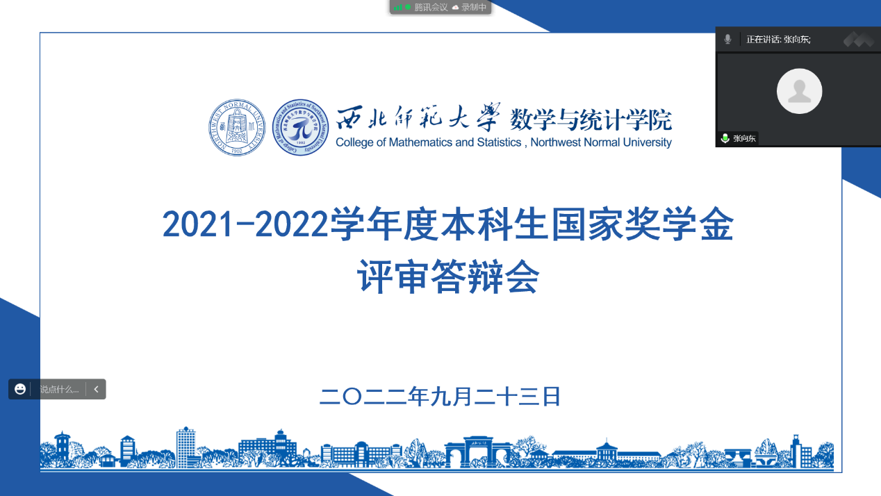 9月23日,太阳成集团tyc召开2021—2022学年度国家奖学金线上评审答辩会,公司青年教师代表陈文静、徐嫚、王金玲、陈妹君,专职辅导员周宇及员工代表相怡冰共六人组成评委会参加评审,党委副书记张向东监督评审过程,评审会由专职辅导员柳景荣主持。