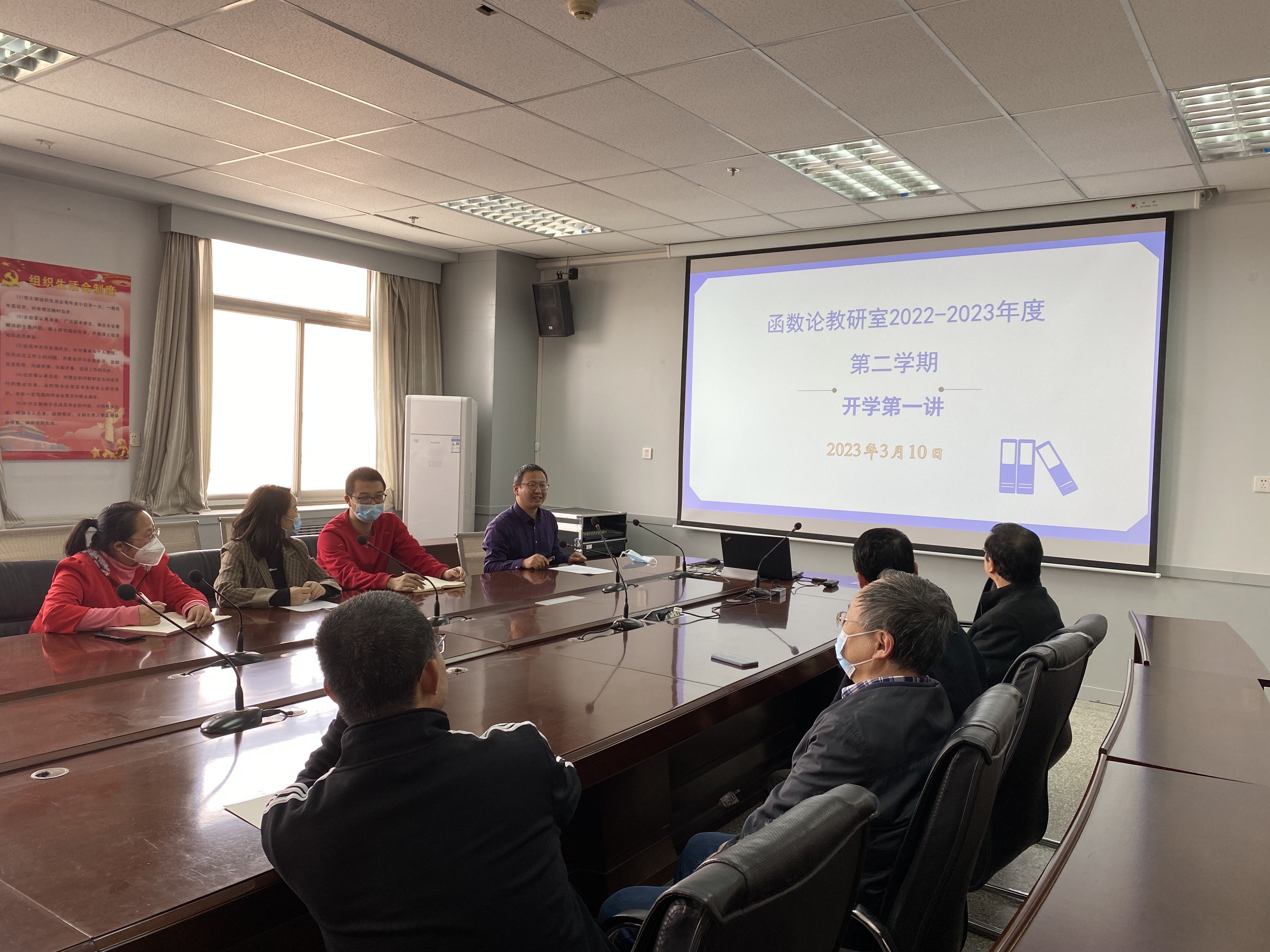 根据公司《关于开展2022-2023学年度第二学期“开学第一讲”教师教育活动的通知》,公司函数论教研室于2022年3月10日下午在教学9号楼A区1611会议室组织开展了2023年春季学期开学第一讲活动。活动由教研室主任陈鹏玉组织,教研室全体成员参加。