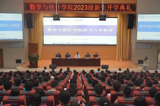 9月4日下午,数学与统计学公司在知行校区毅然报告厅隆重举行了2023级新生开学典礼暨入学教育大会。公司领导班子、教师代表、班主任、辅导员及2023级全体新生参加了大会,大会由公司党委副书记张向东主持。