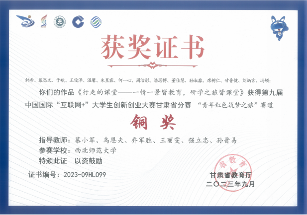 近日,第九届中国国际“互联网+”老员工创新创业大赛甘肃省分赛奖杯及证书陆续发放,公司学子获省级银奖2项、铜奖4项。
