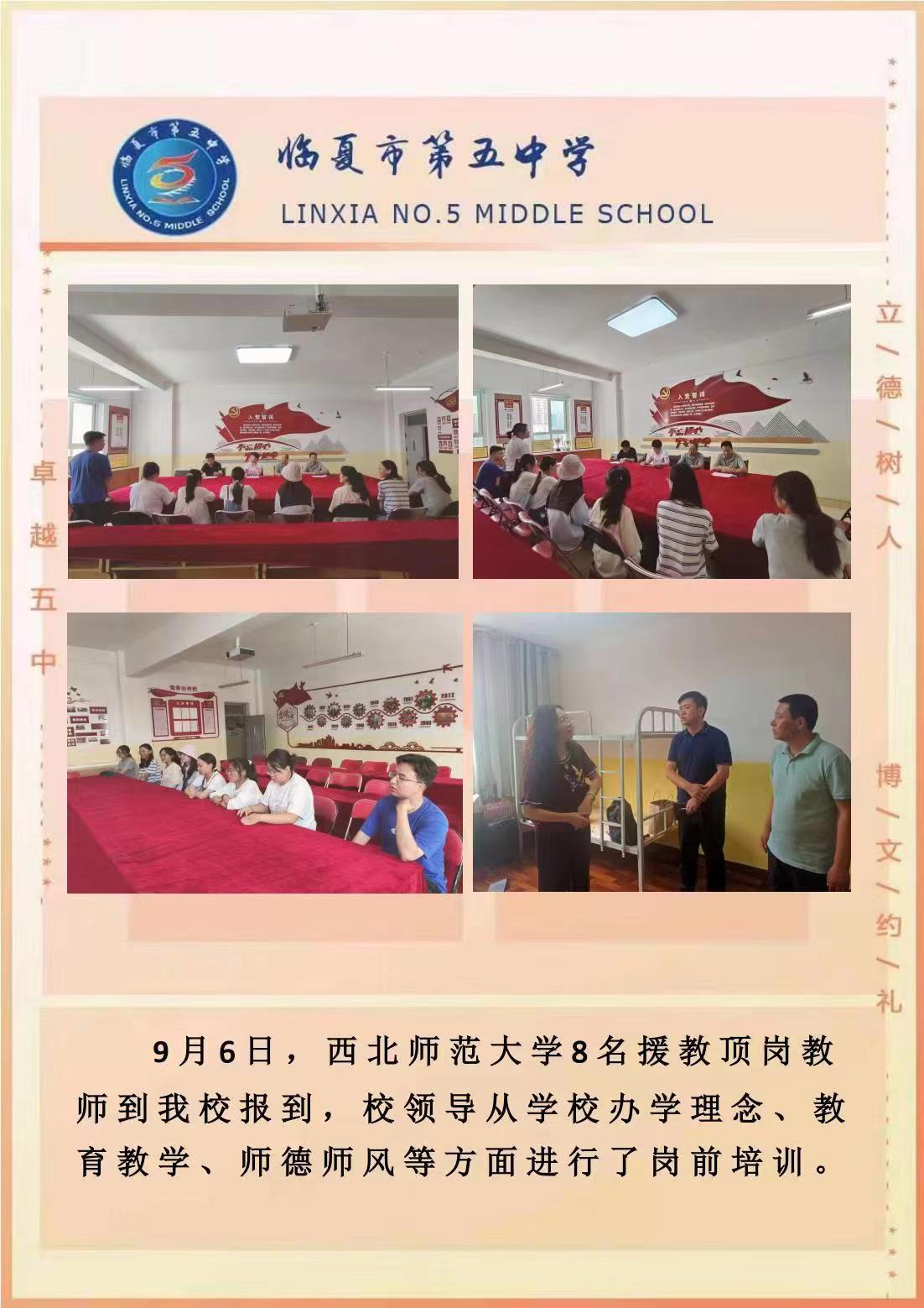 202396日,临夏市第二中学,临夏市教育局为来自太阳成集团tyc官网的107名援教顶岗实习教师举行了隆重的欢迎仪式。仪式结束后,各位援教顶岗教师来到各自所属公司,快速环境适应,参加了一系列岗前培训等学习和工作,全方面的学习了各公司的办学理念、公司产品工作、师德师风养成等。带队老师对于顶岗教师的生活环境进行落实调查,就员工基本生活条件与公司对接,确保了顶岗教师的基本生活保障。