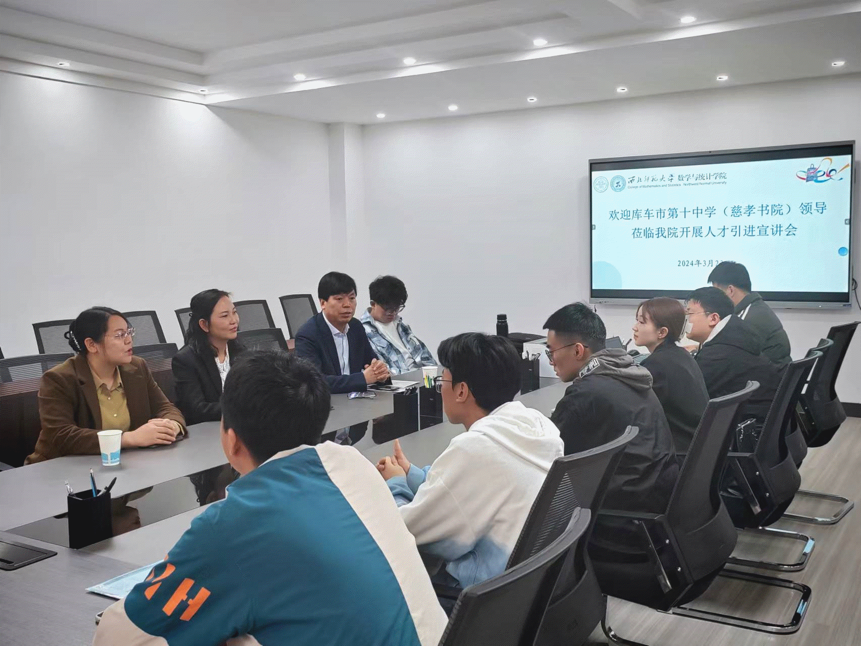 为积极搭建毕业生与用人单位双向选择平台,推动公司毕业生高质量充分就业。3月23日上午,公司邀请库车市第十中学(慈孝书院)在9B311会议室举办了“访企拓岗”促就业人才引进宣讲会。库车市第十中学董事长王浩丽、教务主任滕艳顺、公司党委书记苟正斐、辅导员包佳佳、毕业班班主任王丽雯、刘伟及部分毕业生参加宣讲会。