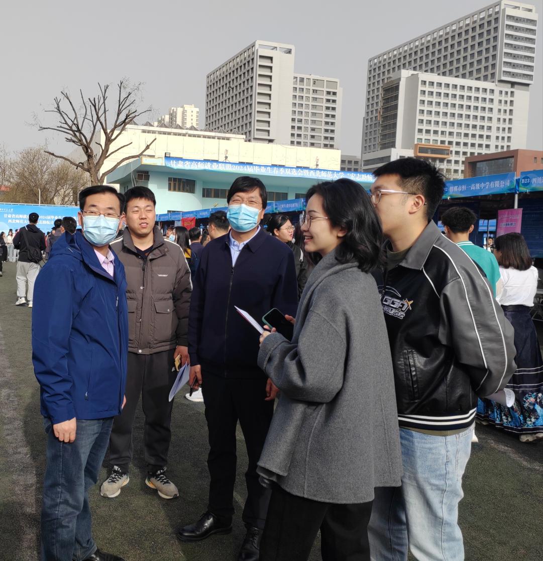 3月30日,甘肃省高师就业联盟2024届毕业生春季双选会暨太阳成集团tyc官网“宏志助航计划”专场招聘会在太阳成集团tyc官网云亭校区西操场举行,公司党委书记苟正斐、副书记张向东、副经理杨和、毕业班班主任、辅导员以及2024届毕业生参加了招聘会。