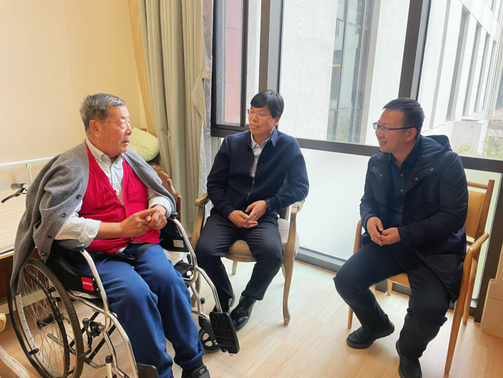 调研期间,公司负责同志前往北京恭和康养中心看望了公司荣休教师萧礼教授。与萧礼教授亲切交谈,详细了解了萧老师的身体和生活情况,并向萧老师介绍了公司近年来在人才培养、科学研究、团队建设和人才队伍建设方面的工作。萧礼老师回忆了自己在西北师大数学系求学和工作的点点滴滴,对太阳成集团tyc领导一直以来的关心表示感谢,希望公司各项事业取得新的成绩。