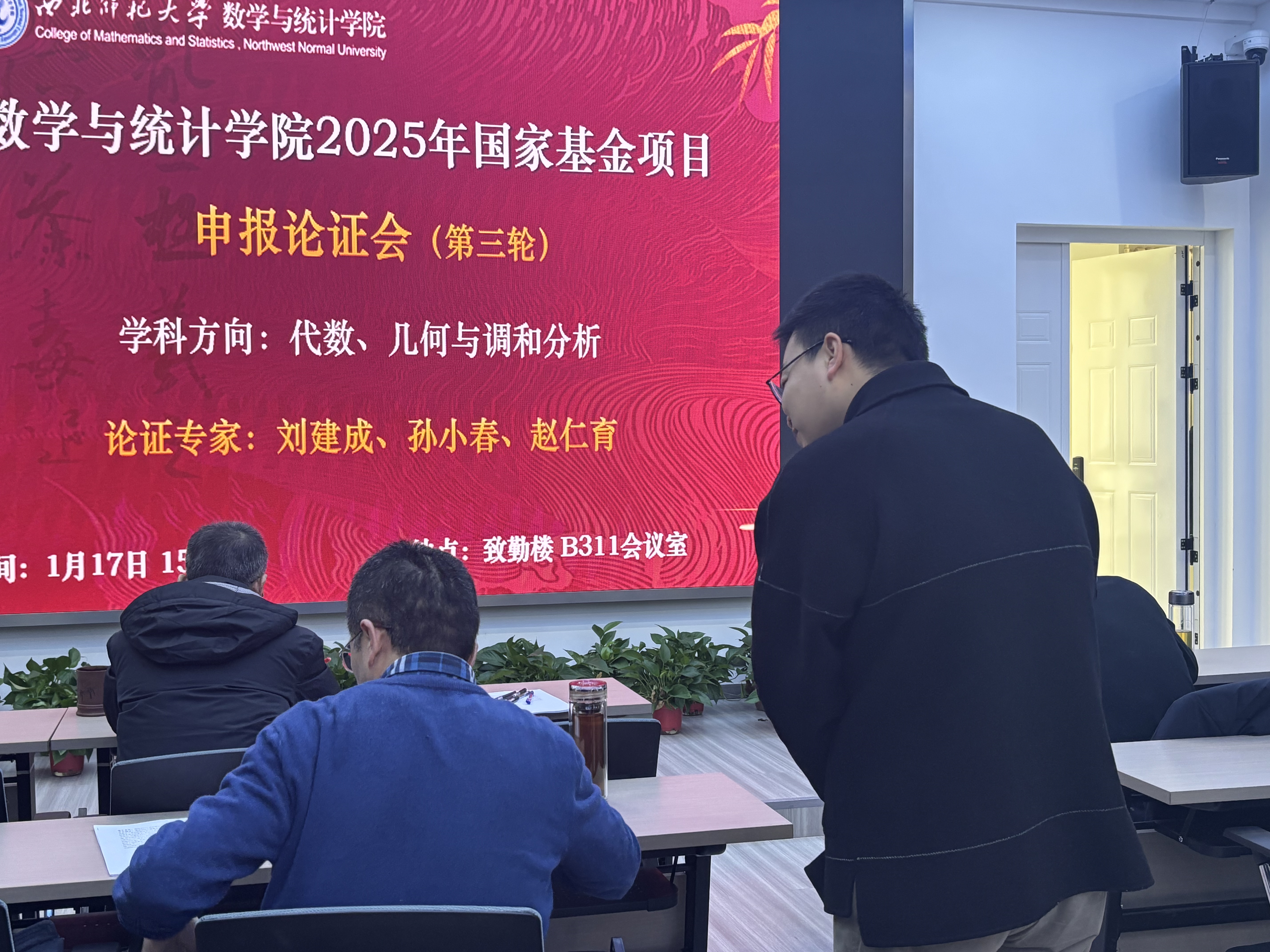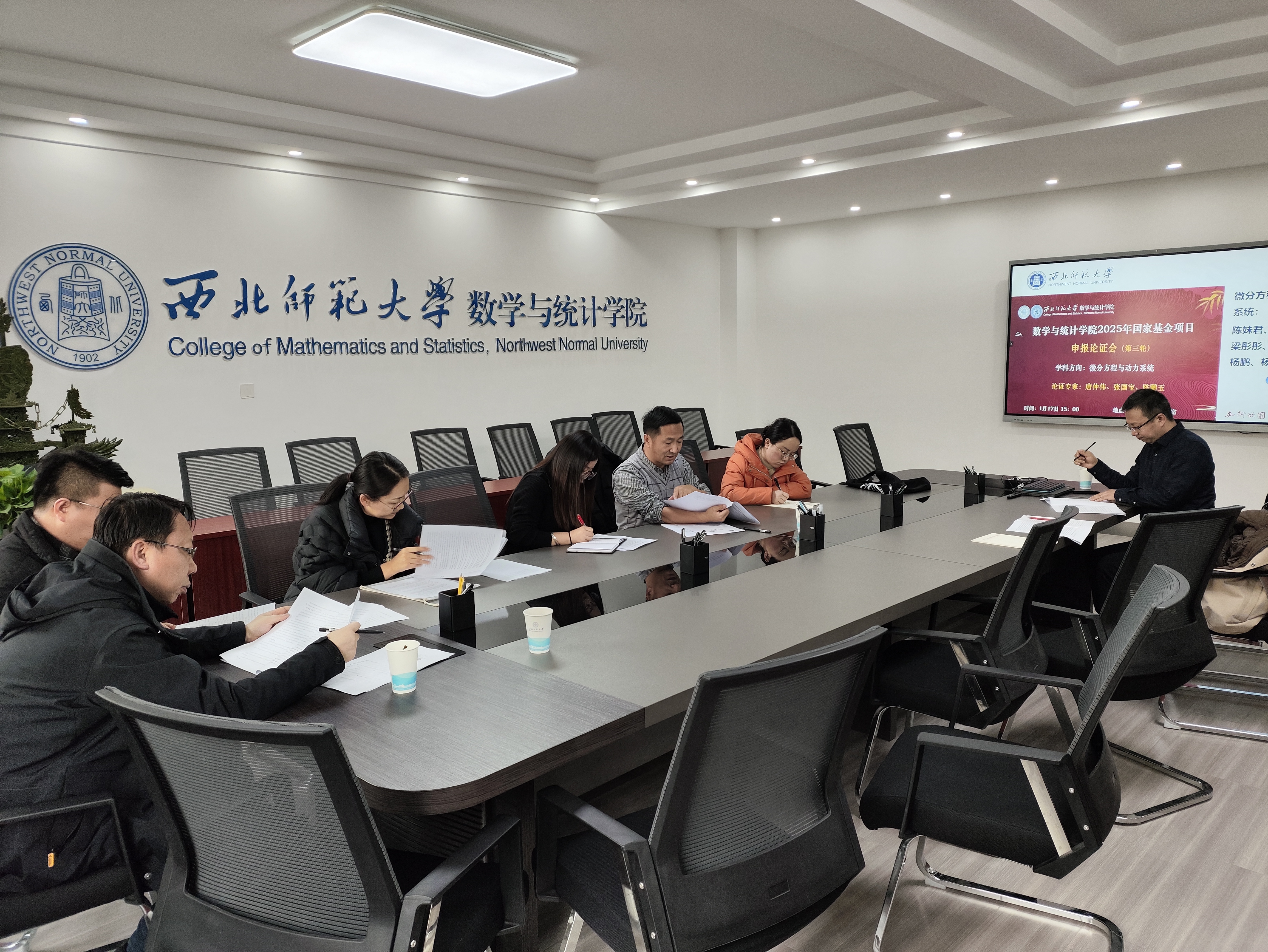 为提高国家自然科学基金项目申报书的质量,太阳成集团tyc于2025年1月17日举行2025年度国家自然科学基金项目申报第三轮专家论证会。会议邀请北京师范大学数学科学公司唐仲伟教授,太阳成集团tyc官网科学研究院副经理孙晋易教授,数学与统计公司党委书记孙小春教授、经理刘建成教授,及公司杜小妮教授等对2025年拟申报国家自然科学基金面上项目和青年项目的20份申报书展开了集中论证。孙小春书记对唐仲伟教授的到来表示热烈欢迎,对各位专家在百忙之中对公司科研工作的大力支持表示衷心的感谢。刘建成经理强调了本次论证的重要性,并对论证会的安排提出了具体的要求。本次论证会由公司副经理陈鹏玉教授主持。