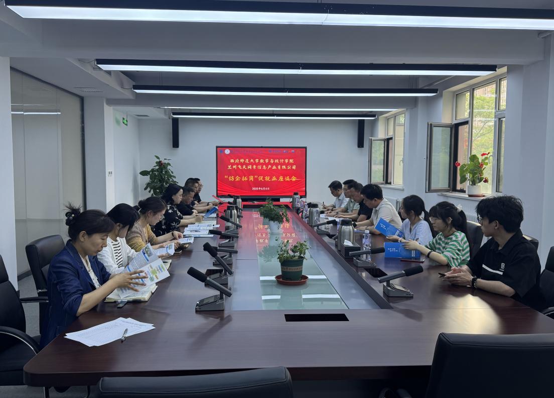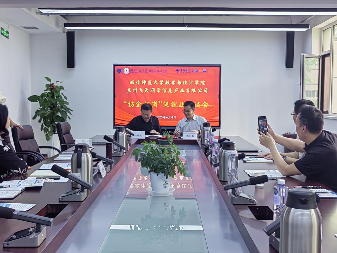 6月5日,数学与统计公司党委书记孙小春,党委副书记张向东,信息与统计系主任杨宏,专职辅导员包佳佳及员工代表一行前往兰州飞天网景信息产业有限公司,开展“访企拓岗”促就业活动。飞天网景副总经理杜晓东、人力资源部经理卫家燕、创新业务事业部团队负责人赵鹿源、创新业务部资深客户经理袭瑞、科技创新部技术经理李璐等人出席活动。